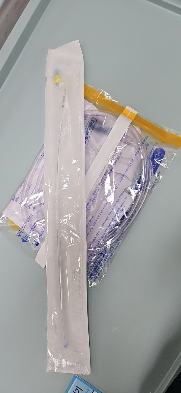 폴리 카테터는 14, 16, 18, 20, 22, 24fr 사이즈가 있으며 숫자가 클수록 굵어집니다.