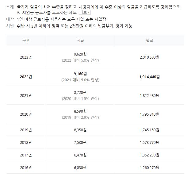 2023년 최저임금(최저시금/최저월급)은?