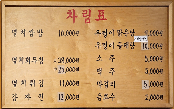 대표 메뉴로 멸치쌈밥, 멸치회 무침, 멸치 튀김 등 있습니다.