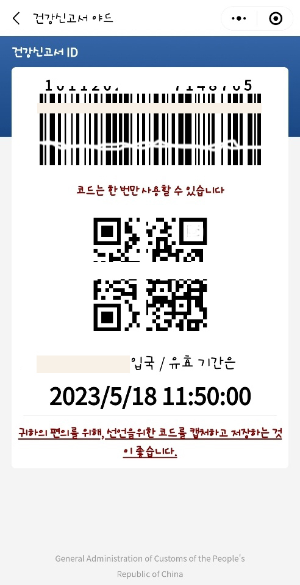 그것은 바로 건강신고서입니다. [반드시 폰에 저장을 해 두세요. 인터넷이 안되면 곤란을 겪습니다.]